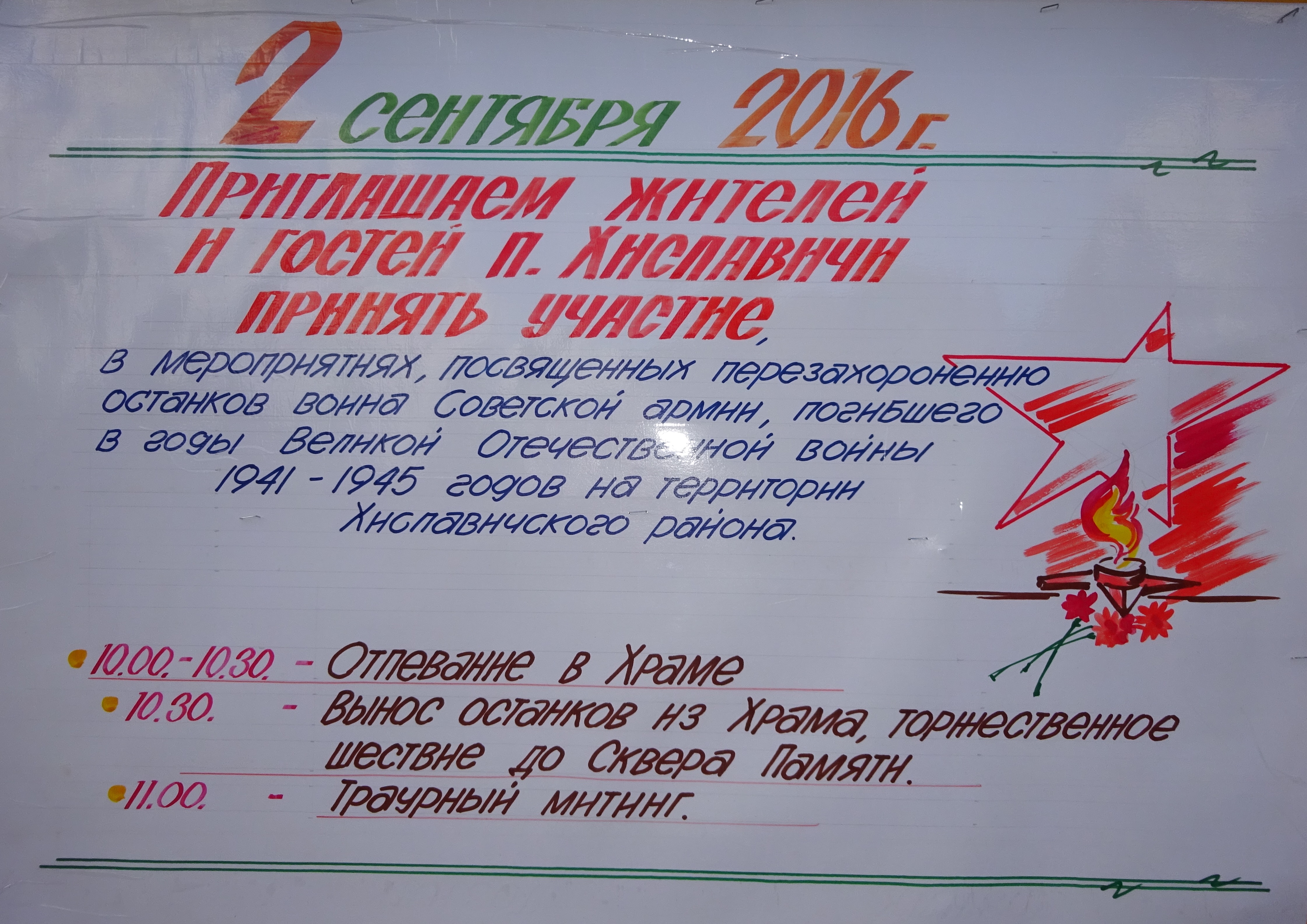02.09.2016 12:34Просмотров: 02 Сентября - Состоится перезахоронение останков воина Советской Армии