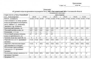 - Информация об уровне воды на временном водомерном посту на р. Лыза возле д. Александровка