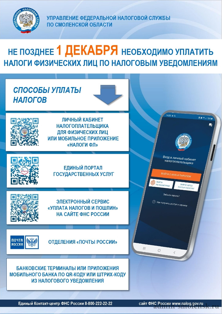 УФНС России по Смоленской области информирует налогоплательщиков региона о сроках исполнения налоговых уведомлений по уплате имущественных налогов и налога на доходы физических лиц, не удержанного налоговым агентом, за 2024 год.
