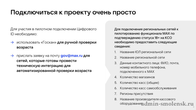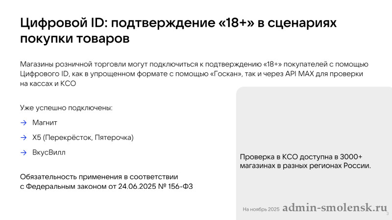 Министерство промышленности и торговли Смоленской области публикует обновленную инструкцию по использованию «цифрового ID MAX» в предприятиях розничной торговли, реализующих товары с возрастными ограничениями.