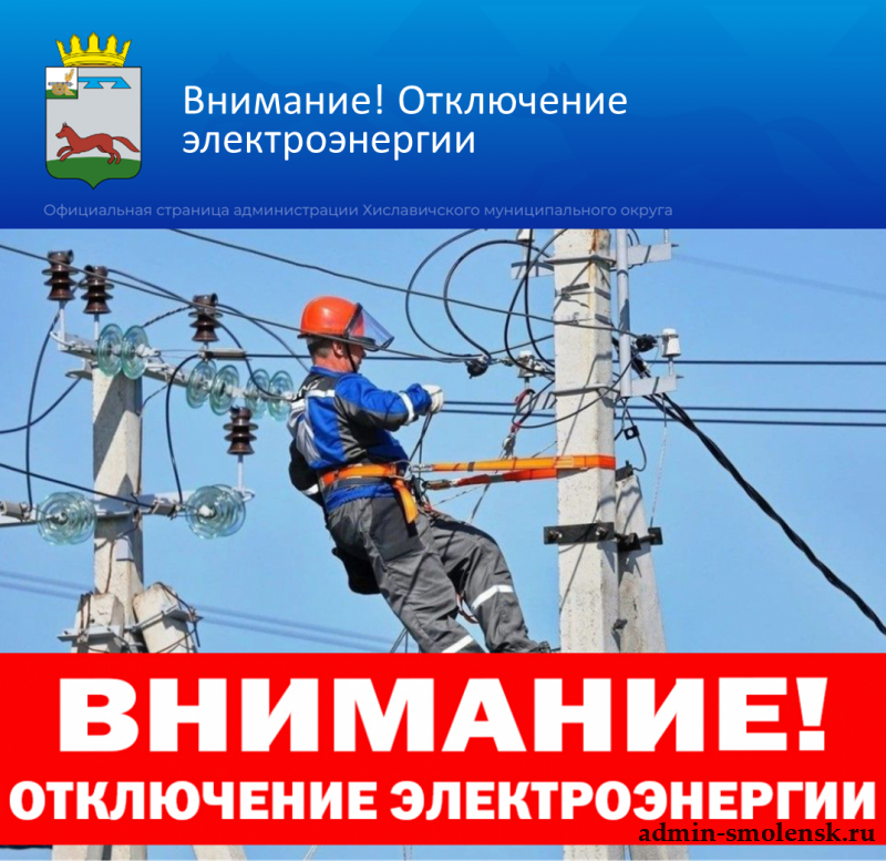По информации Хиславичского РЭС, в связи с проведением ремонтных работ, 9 апреля 2026 года с 09:00 до 17:00 часов планируется отключение электроэнергии у потребителей в пгт. Хиславичи по ул. Советской от д. 37 до д. 53 (пункт полиции).